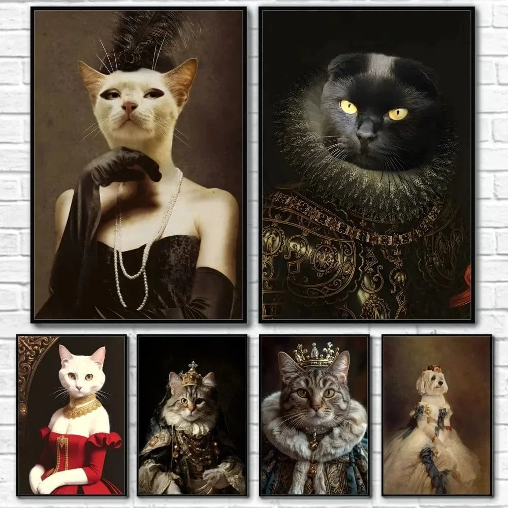Affiche drôle chat Royal Renaissance – Art mural déco maison salon
